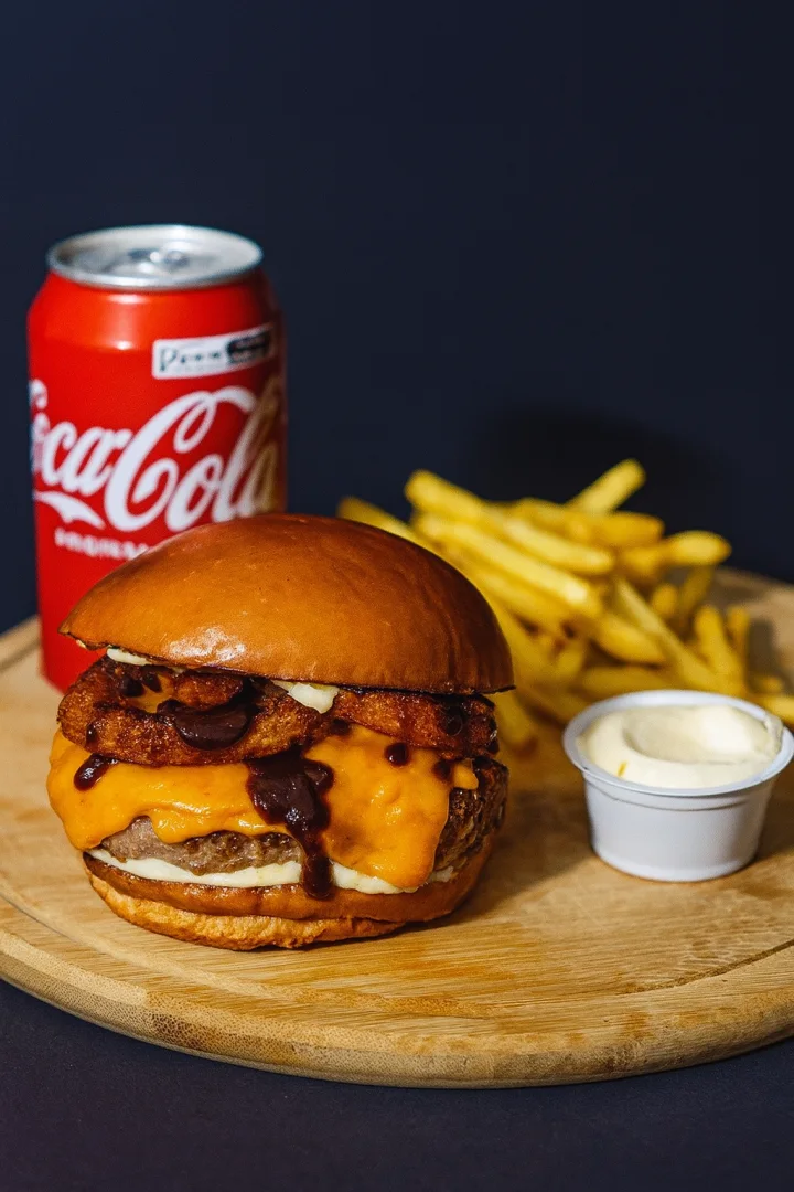 Se você curte crocância, esse é o teu lanche. Pão Brioche Selado Leve e Macio, Hambúrguer de Carne 100% Angus (2 smash’s 70g/150g/180g), Cheddar Derretido, Anéis de Cebola, Maionese e Molho Especial da Casa e o toque Defumado do Barbecue. Morde e ouve o ‘crec’ da felicidade.