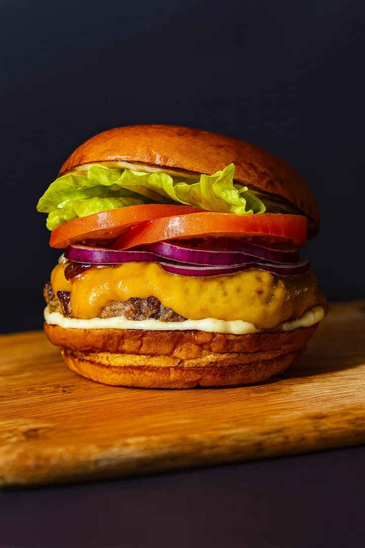 Leve, fresco e saboroso. Pão brioche leve, hambúrguer grelhado, queijo prato derretido, cebola roxa, alface crocante, tomate fresco, maionese e molho especial da casa. O lanche ideal pra quem quer equilíbrio sem abrir mão do sabor.