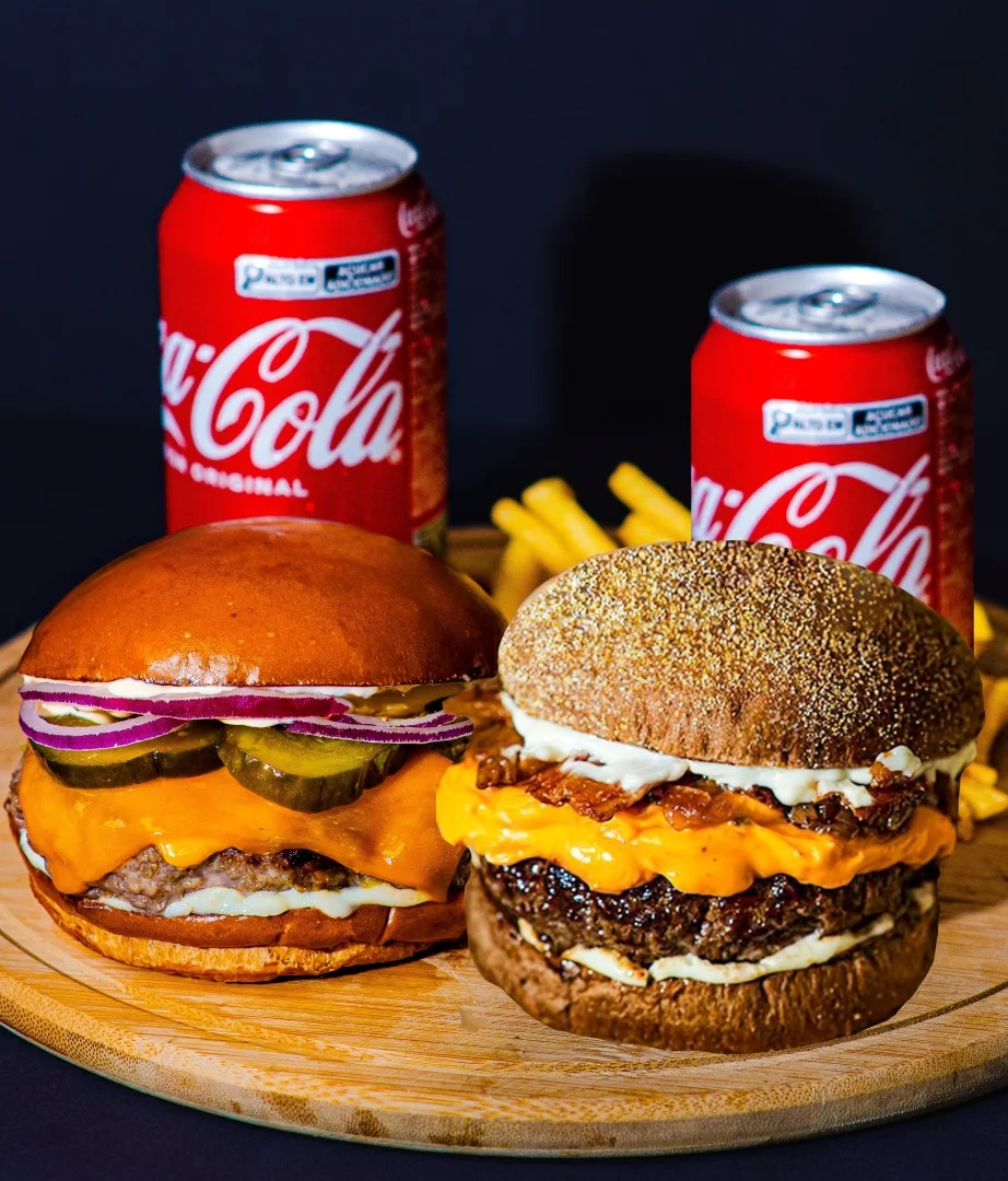 Acompanha 1 Hambúrguer GodMelt + 1 Hambúrguer Álvaron + 2 Fritas + 2 Refri